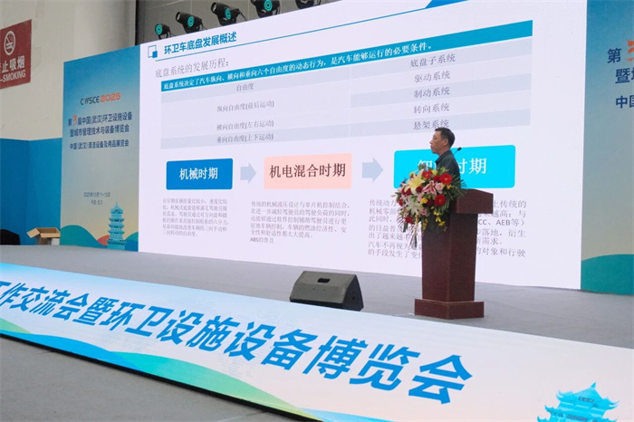На главниот форум на изложбата, Џанг Жихонг, потпретседател на институтот за дизајн на автомобили Skyworth и директор на производната линија за специјални возила, сподели увид во индустријата. Тој истакна дека шасијата на возилата за санитарни услови претрпува длабока трансформација од механичка во интелигентна, и дека јадрото на идната интелигентна шасија лежи во електрификацијата, интеграцијата и интелигенцијата. Овој тренд тесно се усогласува со патеката на технолошкиот развој на Skyworth Auto, поставувајќи цврста основа за нас да ја водиме новата енергетска санитарна ера.